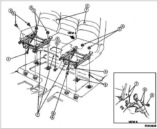 If servicing a front seat (60012) or center seat, remove nuts from under seat frame and remove seat.