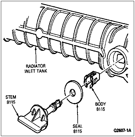 Remove the drain cock body from the radiator tank by squeezing the sides together with a pair of needle nose pliers. Then, pull the body from the inlet tank.
