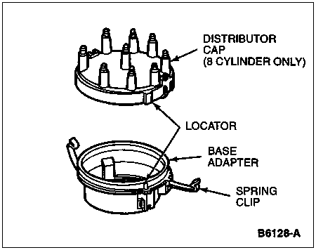 Lift distributor cap (12106) with attached wire set straight off distributor (12127) to prevent damage to the rotor blade and spring. On a V-8 engine, base adapter can be removed by loosening attaching screws.