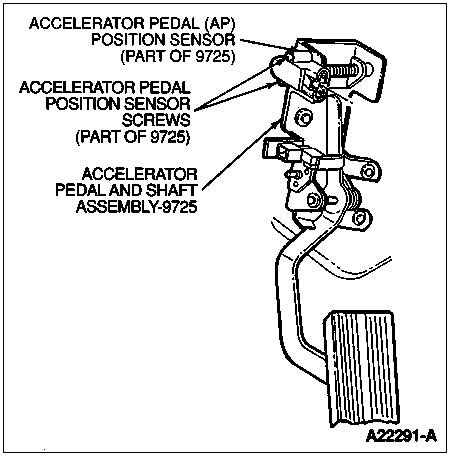 The accelerator pedal (AP) position sensor is not serviced separately. Replace accelerator pedal and shaft assembly if AP position sensor requires service. Refer to Section 10-02.