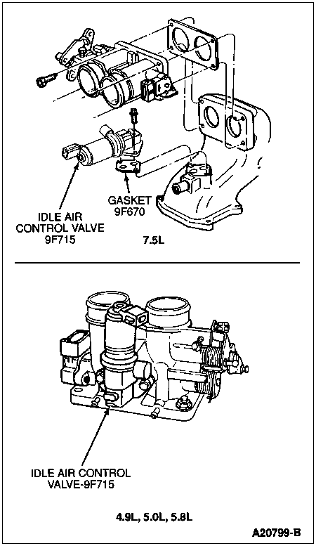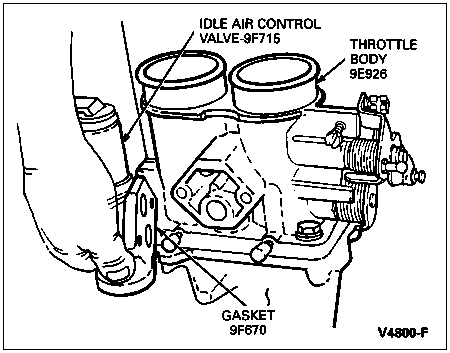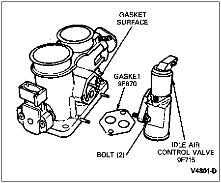Install gasket and idle air control valve on throttle body (9E926) or intake manifold surfaces.