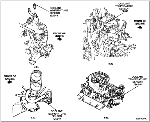 Disconnect wiring from engine coolant temperature sensor (ECT sensor) (12A648).