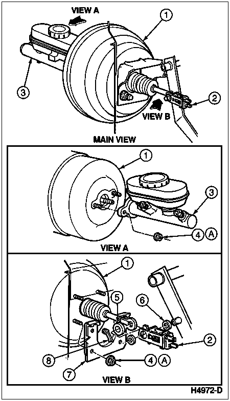 Remove the brake master cylinder-to-power brake booster retaining nuts.