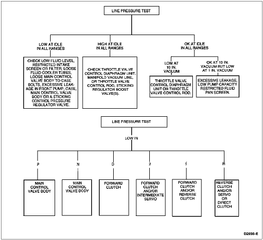 Refer to the preceding Line Pressure Diagnosis Chart to show what components are inoperative when the line pressure test is not within specifications. Do not proceed until you have made any repairs, as required, and the control pressure is within specifications as listed in Specifications, at the end of this section.