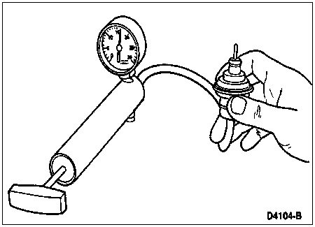 Disconnect the vacuum line at the throttle valve control diaphragm and connect it to a vacuum gauge. With the engine idling, the gauge must have a steady acceptable vacuum reading 54-67.4 kPa (16-20 in-Hg) with the transmission in PARK (P).