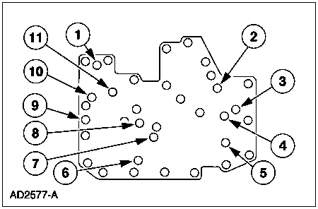 Install Transmission Test Plate T92P-7006-A and gasket. Tighten bolts to 10-12 Nm (7.5-8.5 lb-ft).