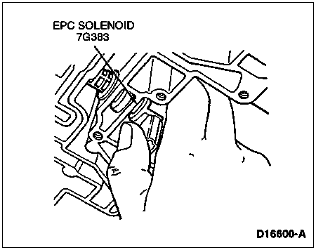 Lubricate EPC solenoid seal and O-ring (7Z383) with a light coating of MERCON® Multi-Purpose Automatic Transmission Fluid XT-2-QDX or -DDX or MERCON® equivalent approved fluid. Install EPC solenoid by sliding it in to the bore.