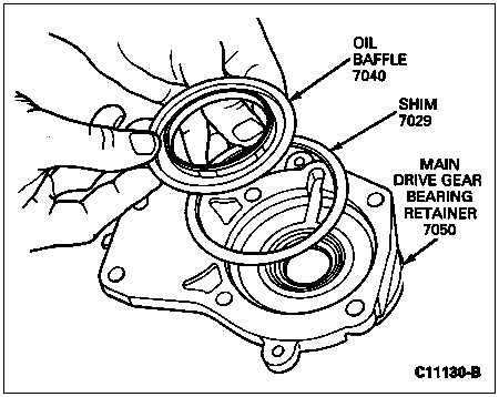 NOTE: If necessary, apply a sufficient quantity of grease to shim, main drive gear bearing retainer and oil baffle to retain them in position during assembly.