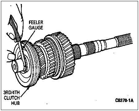 With the original bearing outer snap ring installed, measure the clutch hub end play using a feeler gauge.