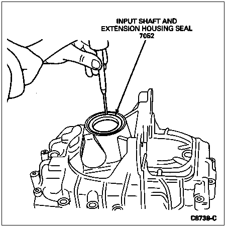 Using a suitable drift, drive the oil seal (7052) out of the extension housing and discard.