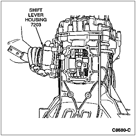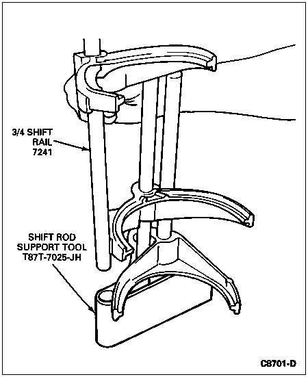 Place the Shift Rod Support T87T-7025-JH over the ends of the shift rails.
