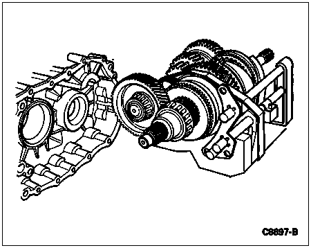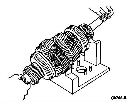 Lift the countershaft cluster gear off the bench stand. Separate the input shaft (7017) from the mainshaft. Lift the mainshaft from the stand. Refer to Mainshaft and to Bearing, Countershaft and to Input Shaft and Bearing in the Disassembly and Assembly of Subassemblies portion of this section.