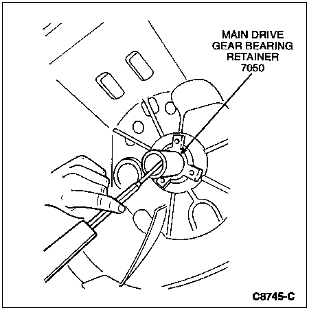 NOTE: The through-bore of oil seal (7052) is designed such that oil seal can be removed without having to disassemble the transmission if removal and replacement of oil seal is all that is required. Tap on oil seal with a screwdriver until oil seal turns then use the screwdriver to pry out oil seal. Insert new oil seal and drive it in flush with the case. Driving the seal into the case itself is NOT recommended.