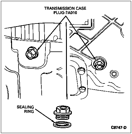 If removed, install the case plugs into the case. Tighten to 60 Nm (44 lb-ft). Both case plugs are of the straight-thread type, which require rubber sealing rings to prevent leakage. (These torque values apply to a cold case.)