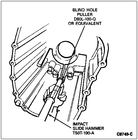 Remove the front bearing outer race with Impact Slide Hammer T50T-100-A and Internal Puller D80L-943-A.