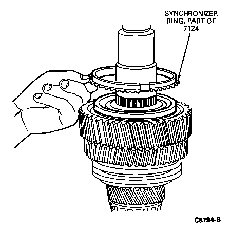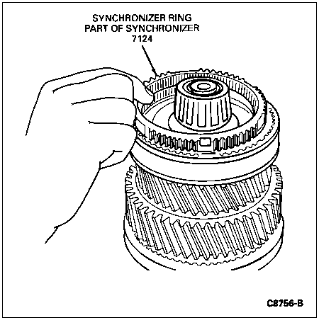 CAUTION: Before installing original synchronizer, check for excessive wear. Refer to wear check of synchronizer under Synchronizers in the Cleaning and Inspection portion of this section.