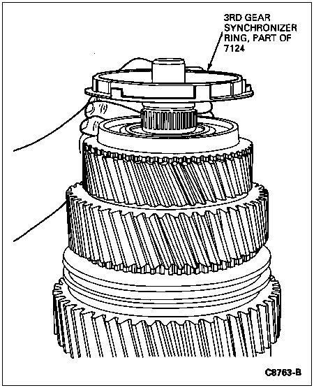 NOTE: The short lugs on the synchronizer ring (part of synchronizer) should be located over the shallow gaps in the 3rd-4th synchronizer body.