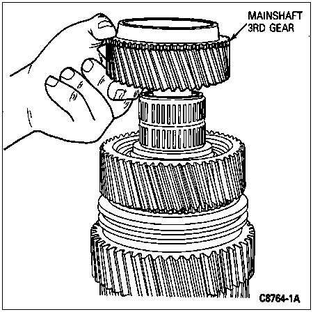 Place the 3rd gear over the 3rd-speed gear bearing on the mainshaft. The taper of the 3rd gear must face up.