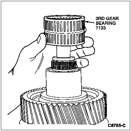 After the 3rd-speed bearing spacer has fully cooled, place the 3rd speed gear bearing over it.