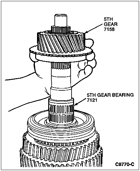 Install the 5th gear on the mainshaft over the 5th gear bearing.