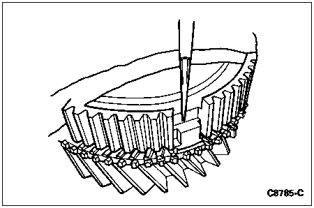 Check the reverse gear end play. End play must be between 0.15-0.35mm (0.00591-0.01378 inch).