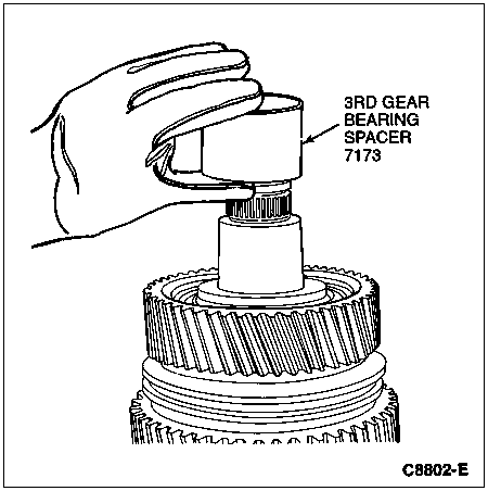 Position the 3rd gear bearing spacer on the mainshaft and tap it down until it seats against its stop on the mainshaft. If necessary, gently tap the 3rd speed bearing spacer to fully seat it.