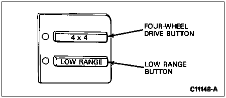 There are two control switches located on the upper right corner of the instrument panel for fingertip shift control. The two switches are mounted horizontally and are identified as "4x4" and "LOW RANGE." Two indicator bar lamps are located in the instrument cluster.