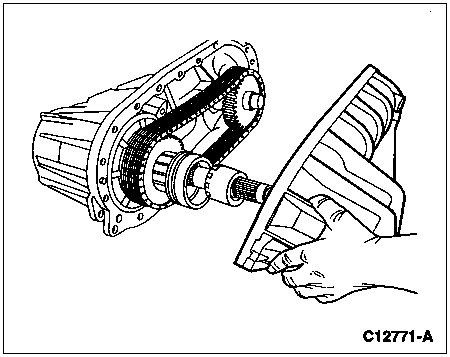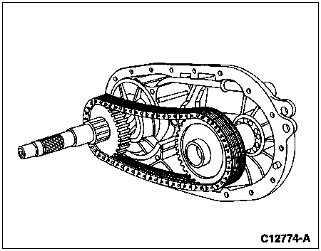 Grasp the drive and driven sprocket complete with the chain and lift them at the same time from the drive and driven output shafts.