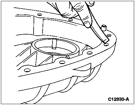 Drive out the input shaft front output shaft bearings (7025) from the inside of the case using a brass drift, tapping them lightly with a small mallet so as not to cause any damage to the case.