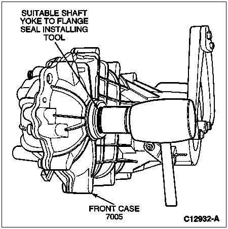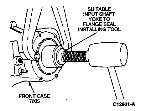 Drive the input and front output yoke to flange seals into the case until they are fully seated against the case using suitable shaft seal installing tool.