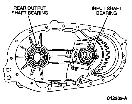 Install the input shaft bearing and the front output shaft bearing in the case using a suitable tool.