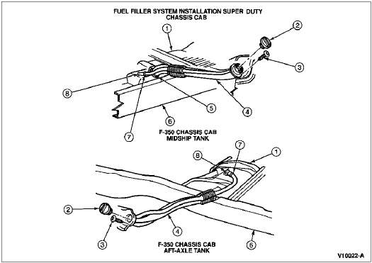 Procedures are the same for aft-of-axle and midship fuel tank filler pipes (9034).