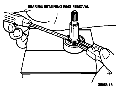 If the ball bearing is to be replaced, remove the retaining ring and press the bearing from the driveshaft.