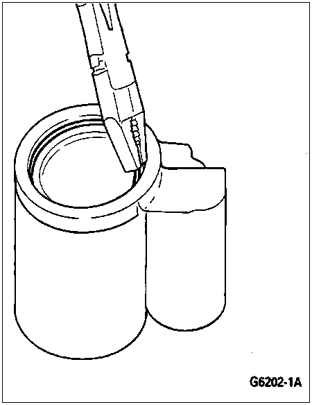 Using pliers, remove hook spring ring from radial groove in power steering pump housing (3A643).