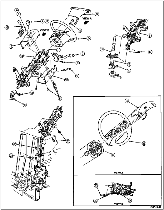 NOTE: All steering column components are assembled with fasteners that are designed with a thread locking system to prevent loosening due to vibrations associated with normal vehicle operation.