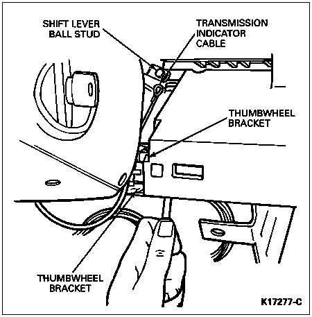 Remove the transmission indicator cable loop from the ball stud on the shift lever (automatic transmission-equipped vehicles only).