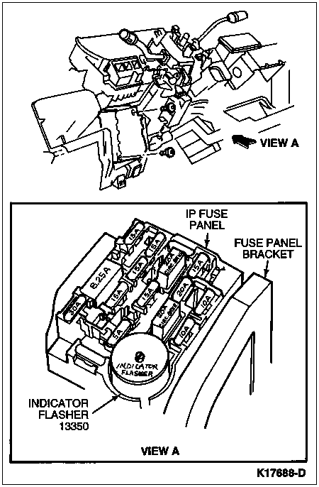 The indicator flasher is located in the instrument panel fuse panel, behind the instrument panel trim plate located to the left of the steering wheel.