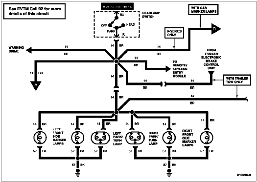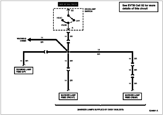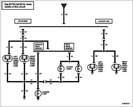 | R | 14 (BR) | Headlamp Switch to Tail Lamp and Side Marker Lamps |