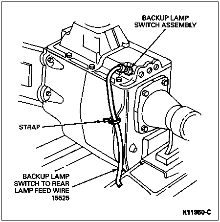 Disconnect the backup lamp switch to rear lamp feed wire (15525) from transmission.