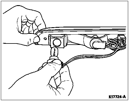 Pull lamp socket and wiring (13410) from rear hi-mount lamp. Note the socket and wiring position in lamp assembly.