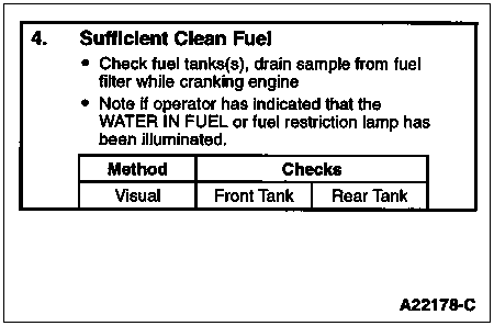 Observe the WATER IN FUEL lamp while cranking the engine. If the lamp is illuminated, the fuel is probably contaminated with water.