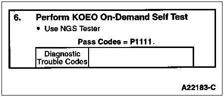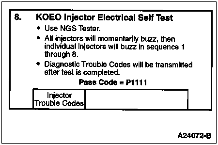 Note: If no DTCs are present and the KOEO Injector Electrical Self Test aborts while trying to perform, go to Pinpoint Test AB, Step AB29.