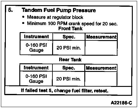 If engine oil is present in the fuel it may indicate an injector O-ring leak and subsequent loss of rail pressure. If that is suspected, check rail pressure during engine cranking (Hard Start/No Start Diagnostic Procedures Step 9C).