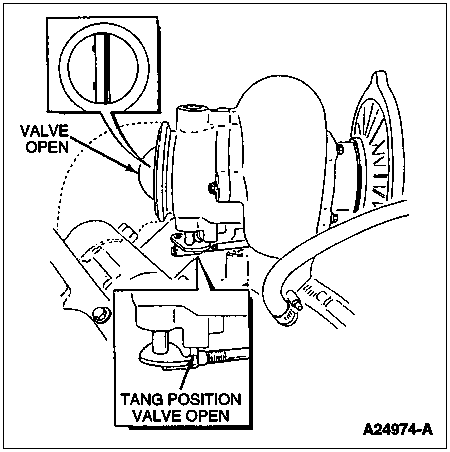 Inspect the exhaust back pressure device bellcrank during cranking and assure that it is not closing. Inspect the exhaust system for damaged or blocked pipes. When the tang is against the stop, the valve is fully open.