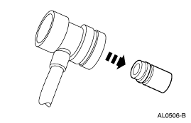 Remove the A/C charging valve cap from the high-pressure service gauge port valve.
