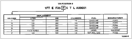 Engine Type, Displacement, Cylinders, Fuel and Manufacturer (VIN Position 8)