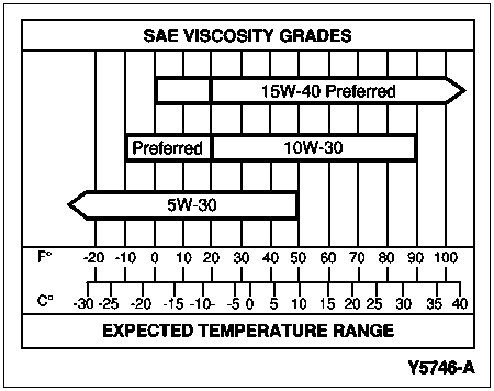 To choose the correct viscosity oil, temperatures in which the vehicle will be driven must be considered. The use of SAE 5W-30 oil is preferred in all climate conditions. The use of SAE 10W-30 is acceptable in moderate to hot climates.