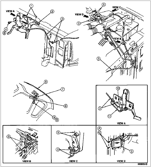 Follow removal procedures in reverse order. Tighten cable and handle assembly screws to 3-4 Nm (27-35 lb-in). Adjust hood latch as described in this section and tighten screws to 22-34 Nm (16-25 lb-ft).