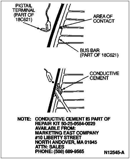 NOTE: There are two methods for repairing terminal separation from back window glass and/or grid breaks. Method 1 involves soldering the terminal to the glass and Method 2 uses an epoxy adhesive.