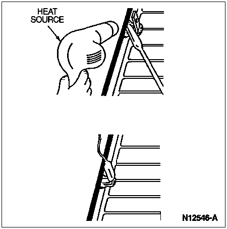 After allowing sufficient cure time, according to manufacturer's instructions, reconnect the heated back window switch and light connector to the pigtail terminal and retest the system.